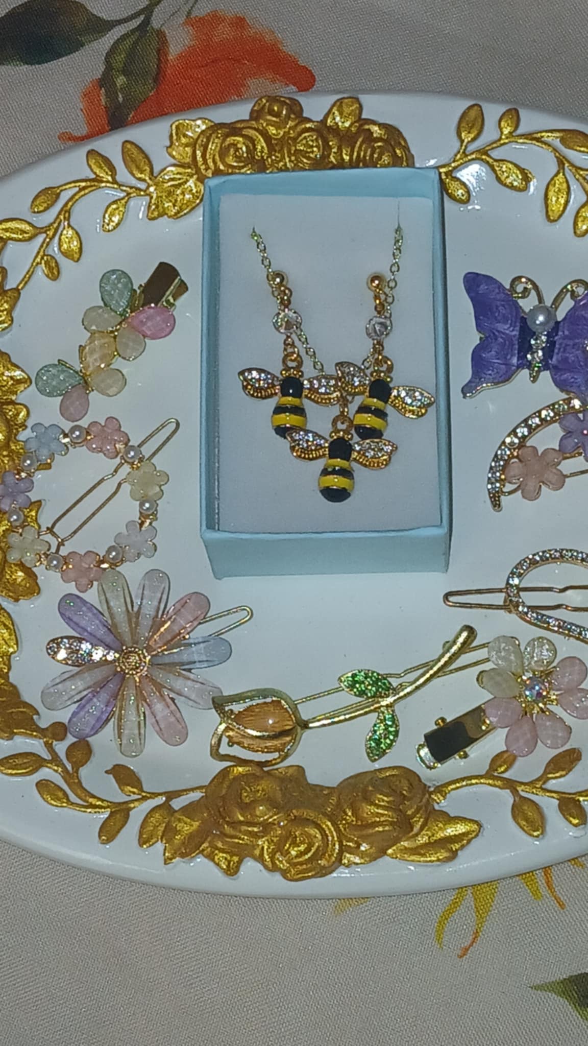 This is the beautiful Handcrafted 18k Gold Plated Jewelry Collection that includes Eloise Bumblebee Set and Penelope Butterfly Set