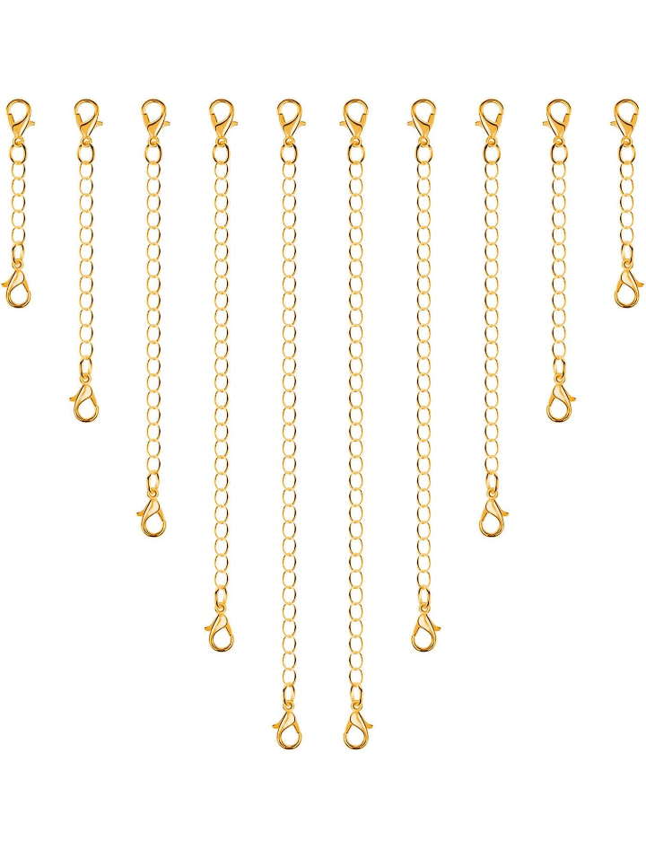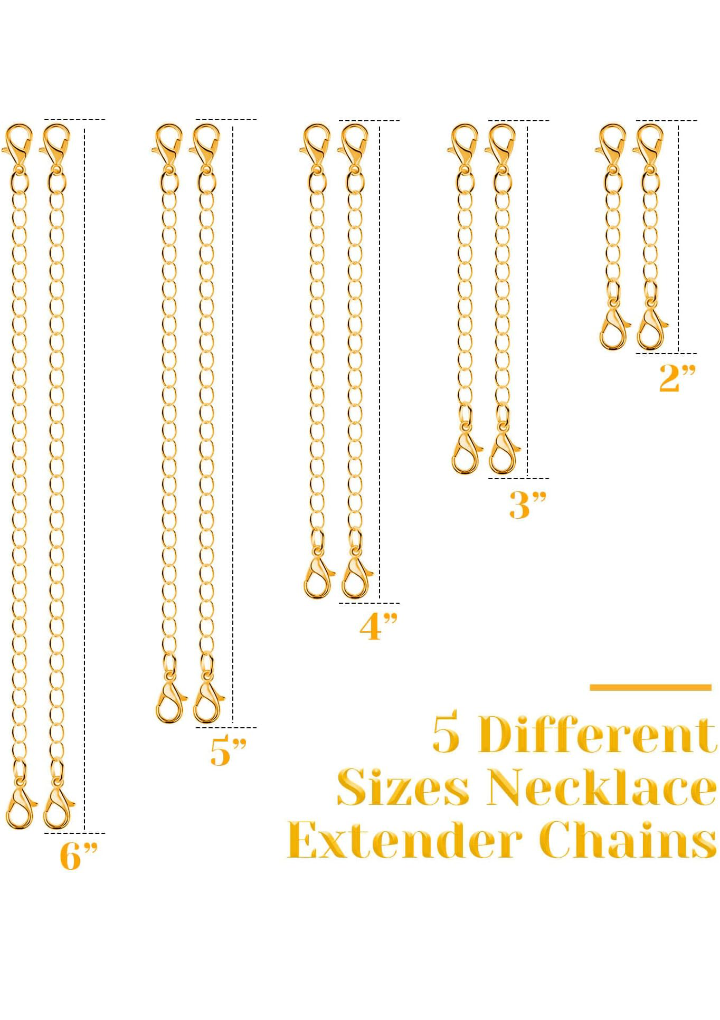 Gold chain extenders for necklaces, bracelets in multiple different sizes